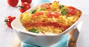 Ingrediente 300 g penne Antonio di Vaio; sare; 40 g unt; 1 ceapă mică; 40 g făină; 300 ml lapte; 100 g brânză Edam rasă; 40 g parmezan ras; ulei de măsline; 6 roșii; frunze de busuioc Mod de preparare ...
