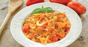 Ingrediente 1 conservă de ton bucăți în ulei 250 g conservă roșii decojite cubulețe 200 g paste farfalle 1 ceapă mică 1 cățel usturoi 1 lingură ulei de măsline sare Mod de preparare Fierbi pastele conform indicațiilor de pe pachet, ...