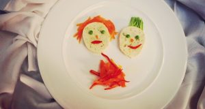 Ingrediente 500 g piept şi pulpă de curcan, fără piele şi oase 50 g mazăre congelată 1 morcov mic 1 ceapă 2 căţei de usturoi 1 lingură unt 400 g smântână dulce cu 32% grăsime 2 albuşuri sare 1 vârf ...