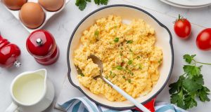Ingrediente 8 ouă ½ cană lapte mai gras sare piper 2 linguri unt Mod de preparare Spargi ouăle într-un vas, pui sare, după gust, și le bați foarte bine cu un tel sau chiar cu mixerul până se deschid la ...