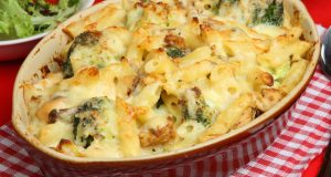 Ingrediente 300 g paste penne 300 g file de somon proaspăt 500 g brânză de vaci cremoasă 150 g cașcaval 3 ouă 1 bucată mică de broccoli 50 g unt sare piper Mod de preparare Fierbi pastele într-o oală mai ...