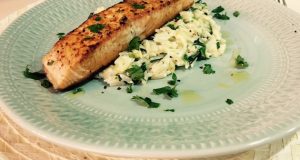 Rețetă de Alexandra Băltățeanu Ingrediente 100 g paste orzo 1 cățel de usturoi 1 legătură pătrunjel verde tocat 50 g spanac tocat 100 ml smântână pentru gătit 200 g file de somon ½ lime sare piper 2 linguri ulei de ...