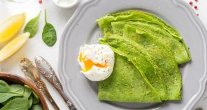Ingrediente 400 g frunze de spanac proaspăt curățate sare 4 ouă 400 ml apă minerală 300 g făină Ulei pentru uns tigaia Mod de preparare Pui apă la fiert și când dă în clocot pui ½ de linguriță de sare. ...
