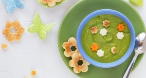 9 luni Ingrediente 6 fire de sparanghel; 3 buchețele broccoli; 1 cartof potrivit; 2 linguri smântână bio; 50 g țelină; 4 fire mărar Mod de preparare Tai partea lemnoasă a firelor de sparanghel, le speli bine, apoi le tai bucăți ...