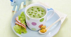 de la 18 luni Ingrediente 500 g boabe de mazăre congelată; 1 ceapă medie; 1 morcov mediu; 1 rădăcină de păstârnac; 1 felie de ţelină; 1 căţel de usturoi; 1 cartof mediu; 1 lingură unt moale; 1 lingură ulei de ...