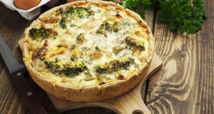 Ingrediente 400 g aluat de patiserie 250 g smântână grasă 6 ciuperci medii 8 buchețele broccoli 100 g cașcaval ras 4 ouă cateva fire de patrunjel ulei de măsline 1 linguriță unt sare și piper Mod de preparare Speli broccoli și ...