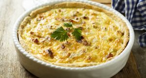 Ingrediente 500 g aluat de tartă 4 bucăți praz mediu 4 felii șuncă de curcan 3 ouă 200 ml smântână grasă 10 g unt 1 vârf de cuțit nucșoară pudră sare piper Mod de preparare Mai întâi încălzești cuptorul la ...