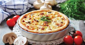 Ingrediente Pentru aluat 250 g făină 150 g unt rece 3 linguri apă rece 1 praf de sare Pentru umplutură 1 cutie cu ciuperci ½ piept de pui fiert 3 ouă 250 g smântână 1 ceapă 50 g cașcaval ½ ...
