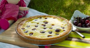 Ingrediente Pentru blat 250 g făină 100 g unt 3 linguri apă rece 1 ou Pentru umplutură 500 g brânză de vaci 4 linguri zahăr pudră 1 linguriţă esenţă de vanilie 4 ouă 300 g cireşe 1 lingură griş 1 ...