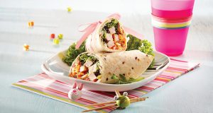 Ingrediente 400 g piept de pui; sare; 20 ml ulei; 1 dovlecel mic; 2 ardei grași; 1 morcov; 4 tortilla mari; salată verde Mod de preparare Speli pieptul de pui sub jet de apă rece, îl usuci cu prosopae absorbante ...