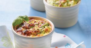 Ingrediente 1 ceapă mare; 1 lingură ulei de măsline; 2 dovlecei; 1 cățel usturoi; 3 ouă; 250 g urdă; 2-3 frunze de busuioc; 50 g parmezan ras; sare; piper Mod de preparare Cureți ceapa, o toci mărunt și o pui ...