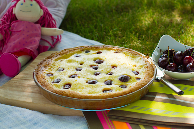 Scoţi sâmburii cireşelor spălate şi le aşezi deasupra compoziţiei de brânză. Introduci tarta în cuptorul preîncălzit la 180º C pentru 50 de minute. O laşi să se răcească, după care o tai şi o serveşti.