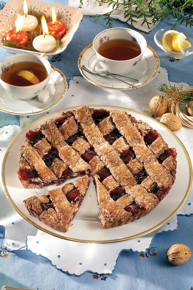 Pui gemul în forma de tartă și din fâșiile tăiate formezi deasupra un grilaj, lipindu-le bine pe margine. Ungi tarta cu ou bătut și o introduci în cuptorul încins la 170°C timp de circa 30 de minute.