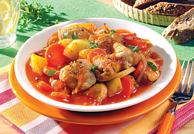 Pe lângă această rețetă de Tocanita de curcan cu legume poți să pregătești un desert delicios: Desert cu brânză și prune.