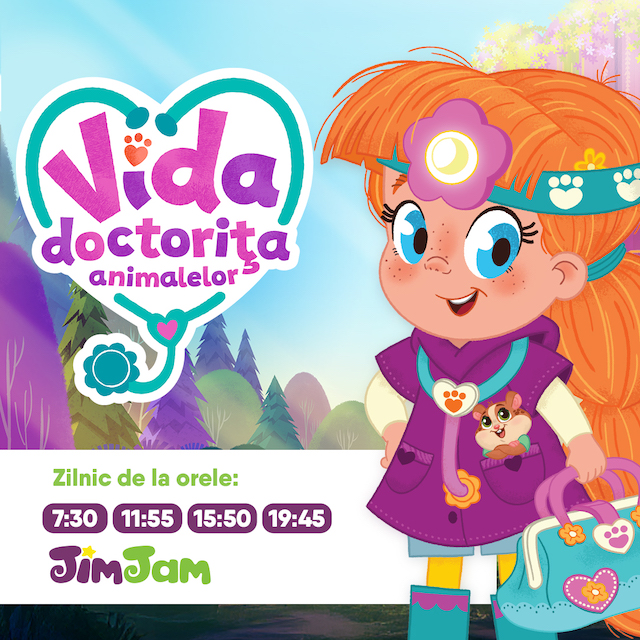 „Vida, doctorița animalelor” se difuzează la JimJam din 16 februarie, zilnic la orele 7:30, 11:55, 15:50 și 19:45.