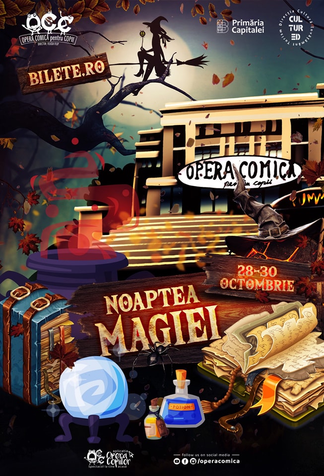 O săptămână mai târziu e momentul Vrăjitorilor să captiveze atenția publicului, la Noaptea Magiei. Spectacolul se desfășoară în Salonul Mozart, de 10 ori, în perioada 28-30 octombrie, și îl aduce în fața publicului pe carismaticul magician al Operei Comice pentru Copii, Bogdan Muntean, cunoscut pentru spectacolele Magic Way, care se joacă mereu cu casa închisă, dar și pentru intervenția inedită din opera Directorul de Teatru, regizată de maestrul Cristian Mihăilescu. Alături de Magician, spectatorii vor avea ocazia să realizeze ei înșiși momente de magie, într-un spectacol dedicat publicului de orice vârstă. Ultimele bilete sunt disponibile în rețeaua bilete.ro.